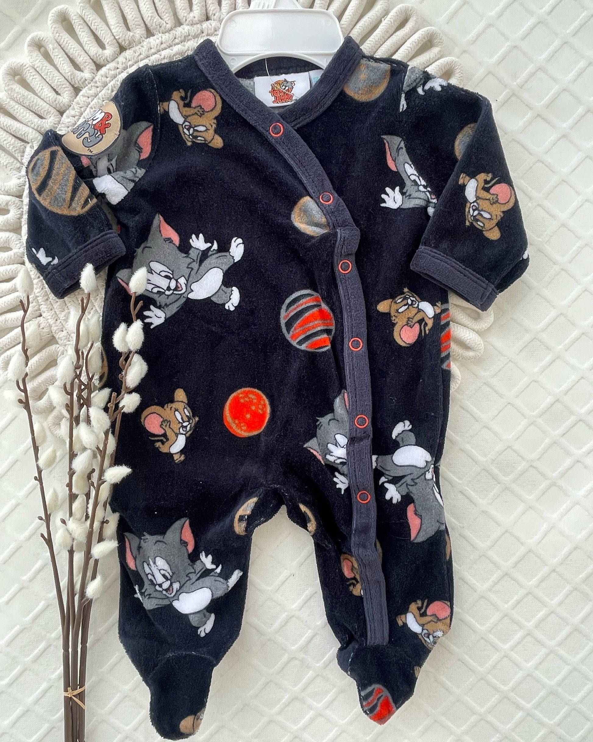 Maak de eerste outfit van je kleintje extra speciaal met dit onweerstaanbaar zachte playsuit, met een schattige Baby Tom & Jerry print. Ontworpen voor comfort de hele dag, het is zacht voor de tere huid en perfect voor knuffels en speeltijd. Een zoete en gezellige keuze voor je pasgeborene!
