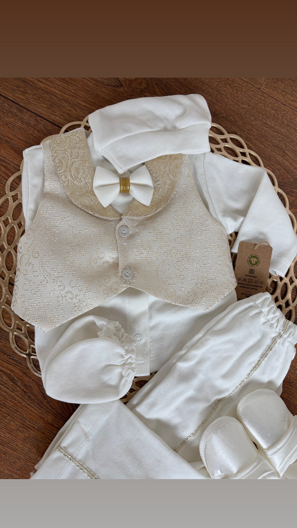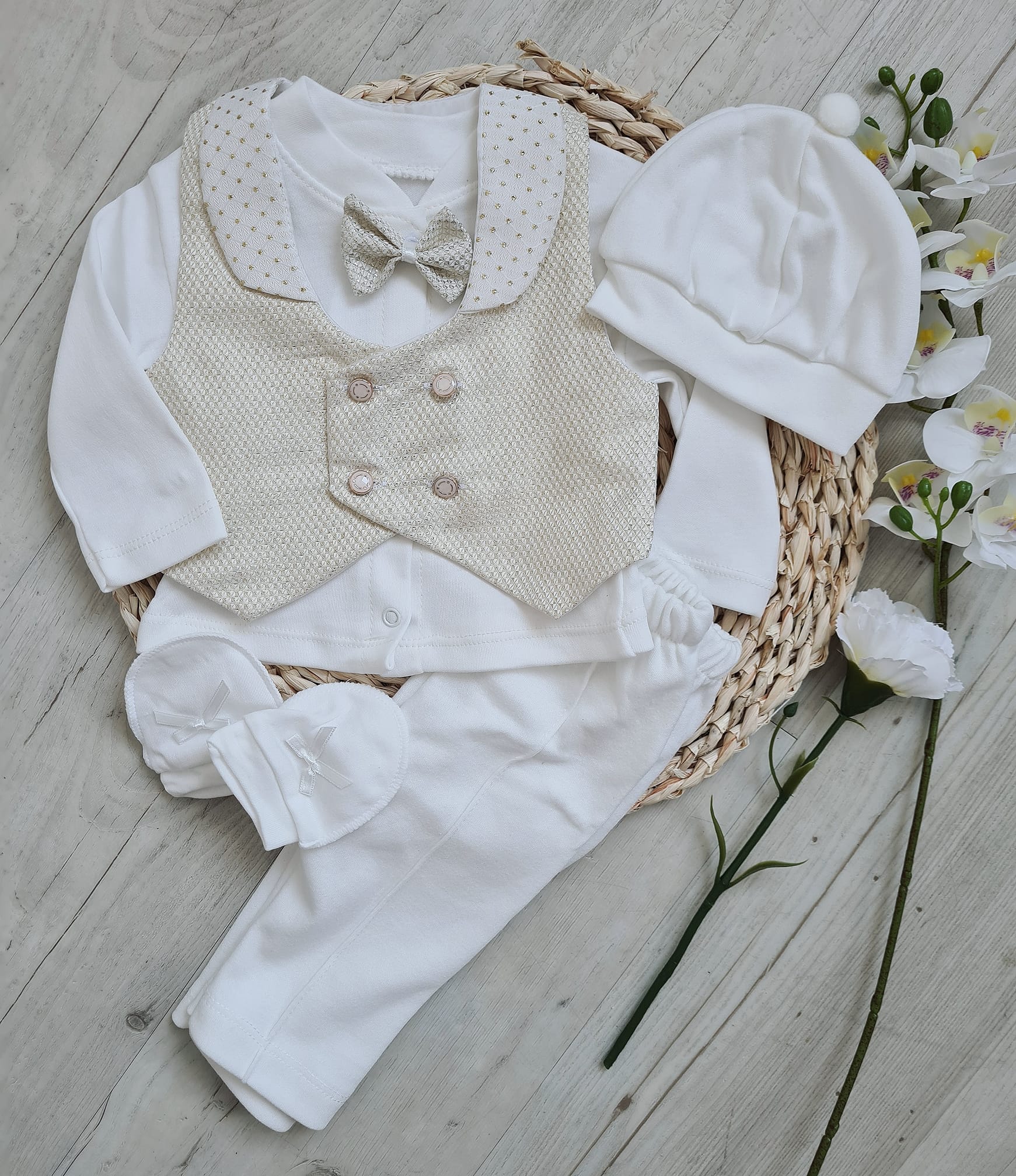 5 Piece luxury baby tuxedo for a special occasion such as a baptism, first photo shoot or wedding.