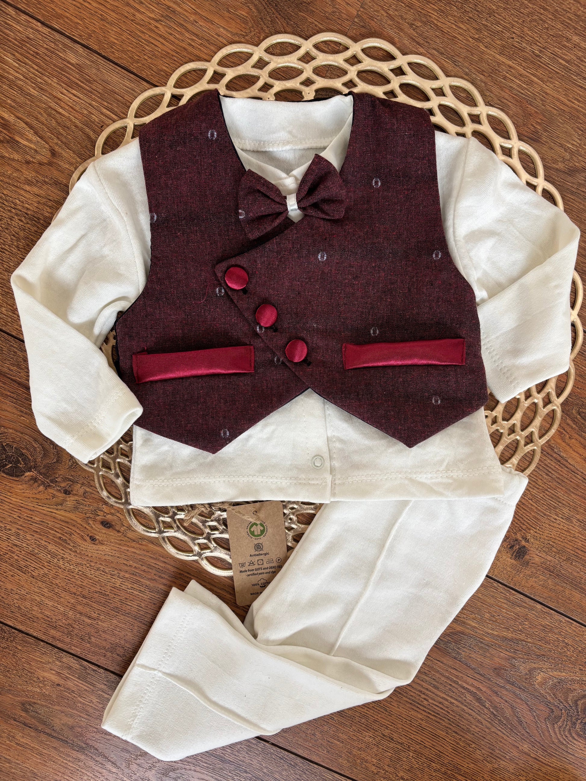 2-Pieces Elegant Partyset with bordeau costume vest and comfi pants.