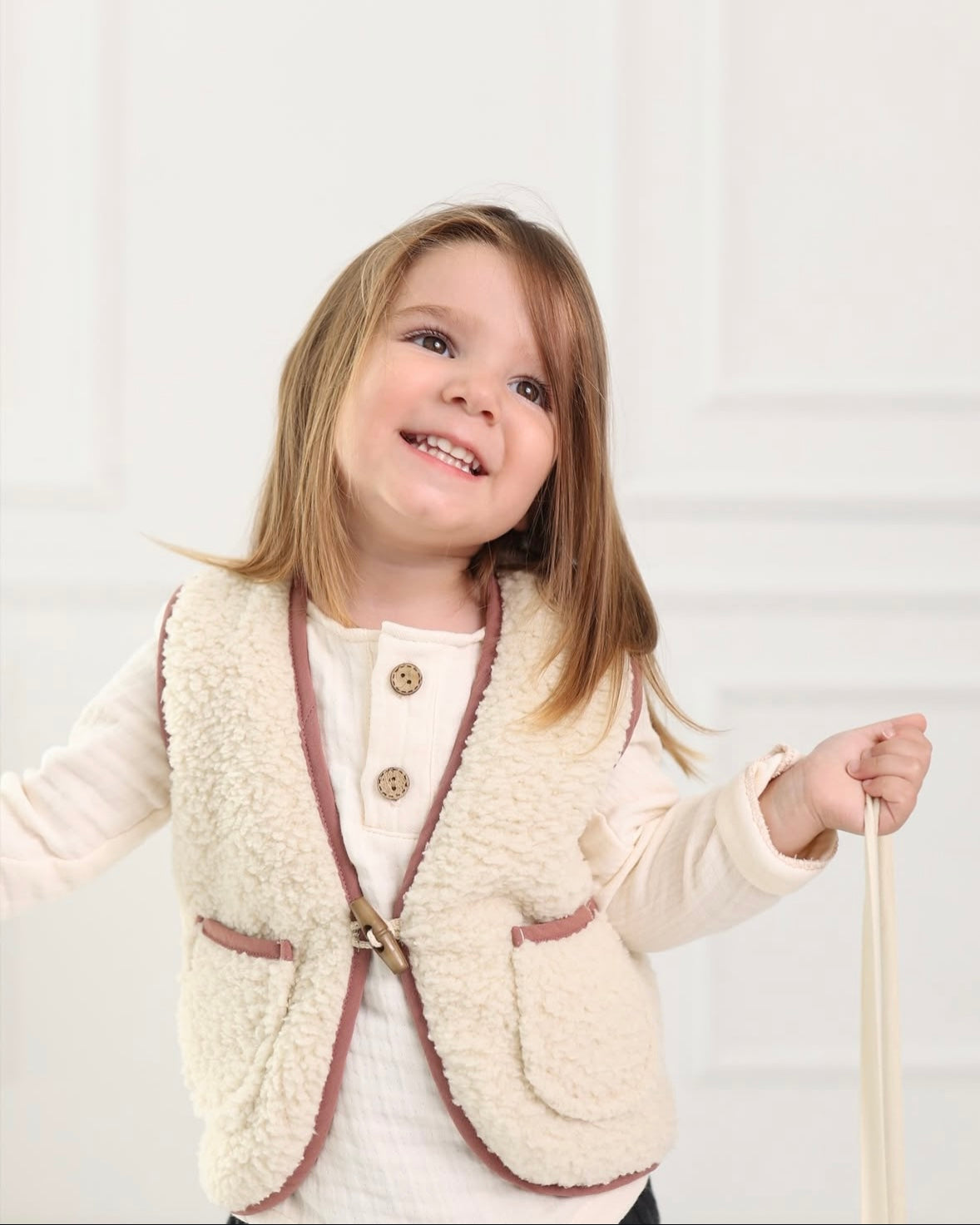 Organic Cotton warm fluffy bodywarmer with handy closure.