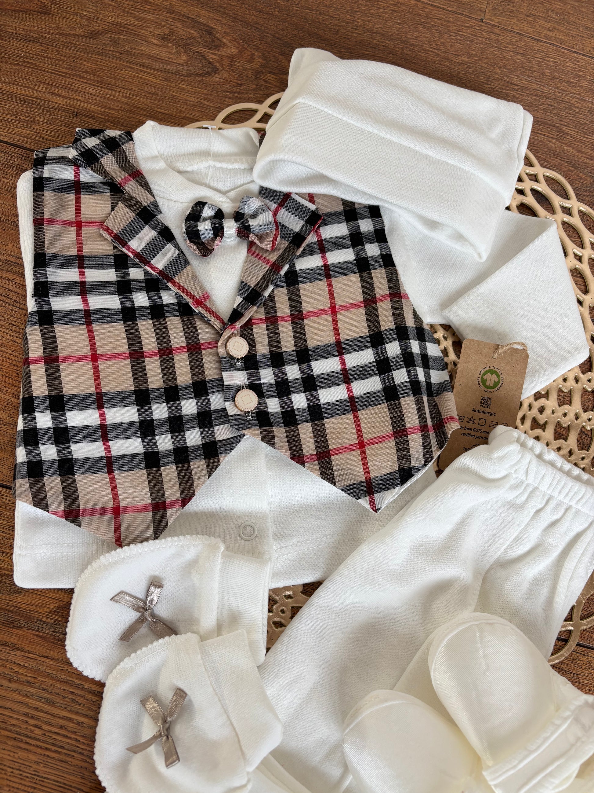 5-Pieces Classic Babyboy set made from 100% Baby cotton, packed in a Luxurious Giftbox.