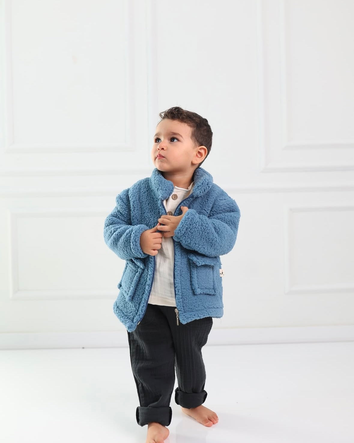 Pure Bio Cotton Fluffy and warm Jacket with Zipper and pockets.