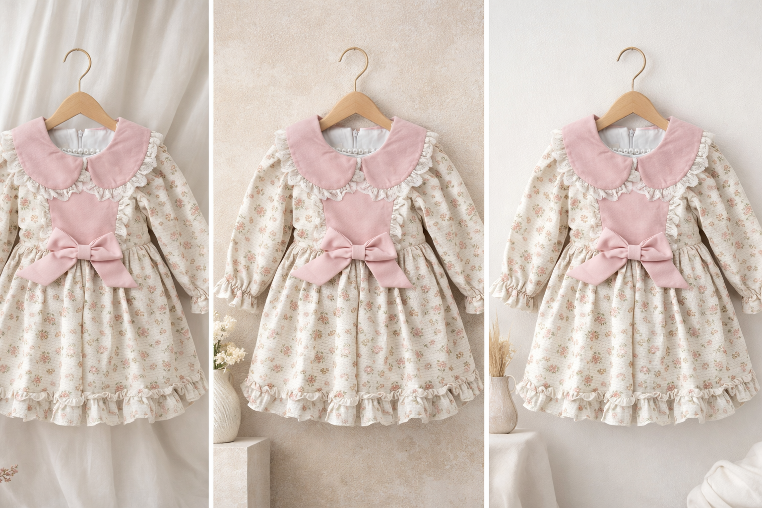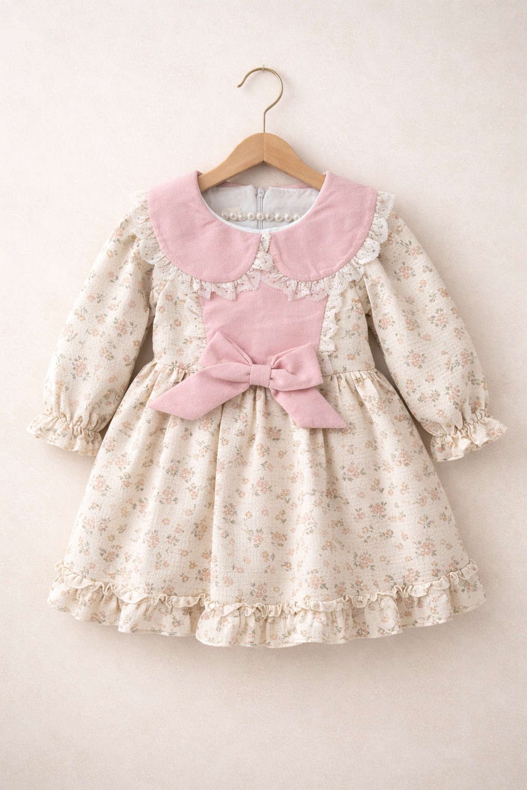 Prachtige Geborduurde bloemenjurk met luxe en chique kraag en prachtige strik aan de voorkant.