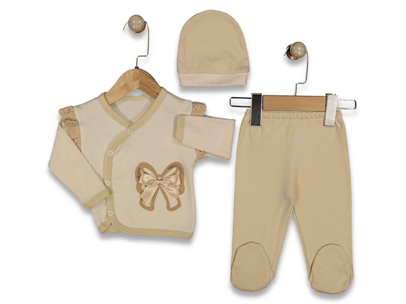 3-Pieces Newborn Babyset with Golden Bow, made of 100% cotton.