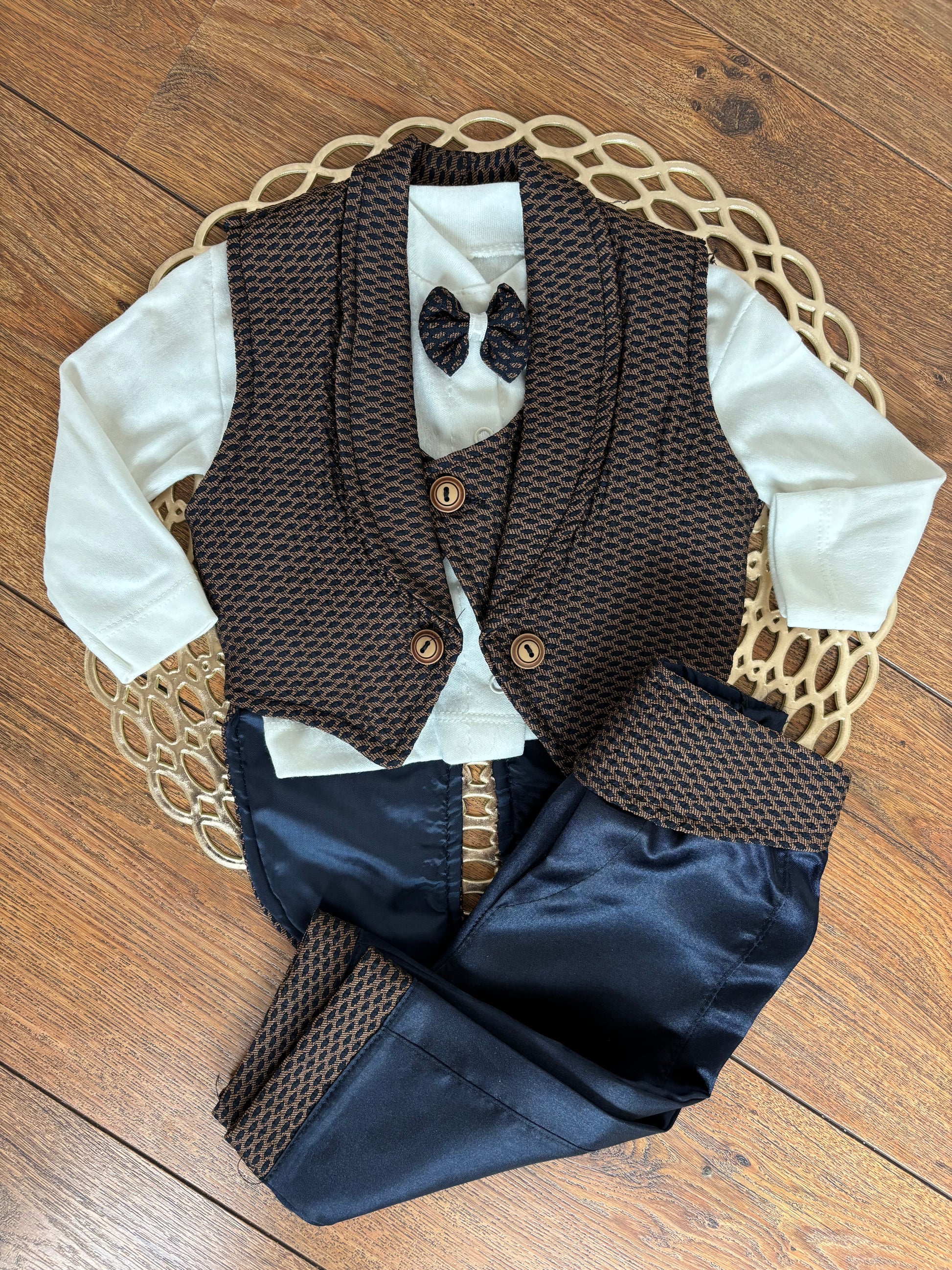 The Elegant Top with bow together with the pants will make your Little boy look like a real Gentleman.